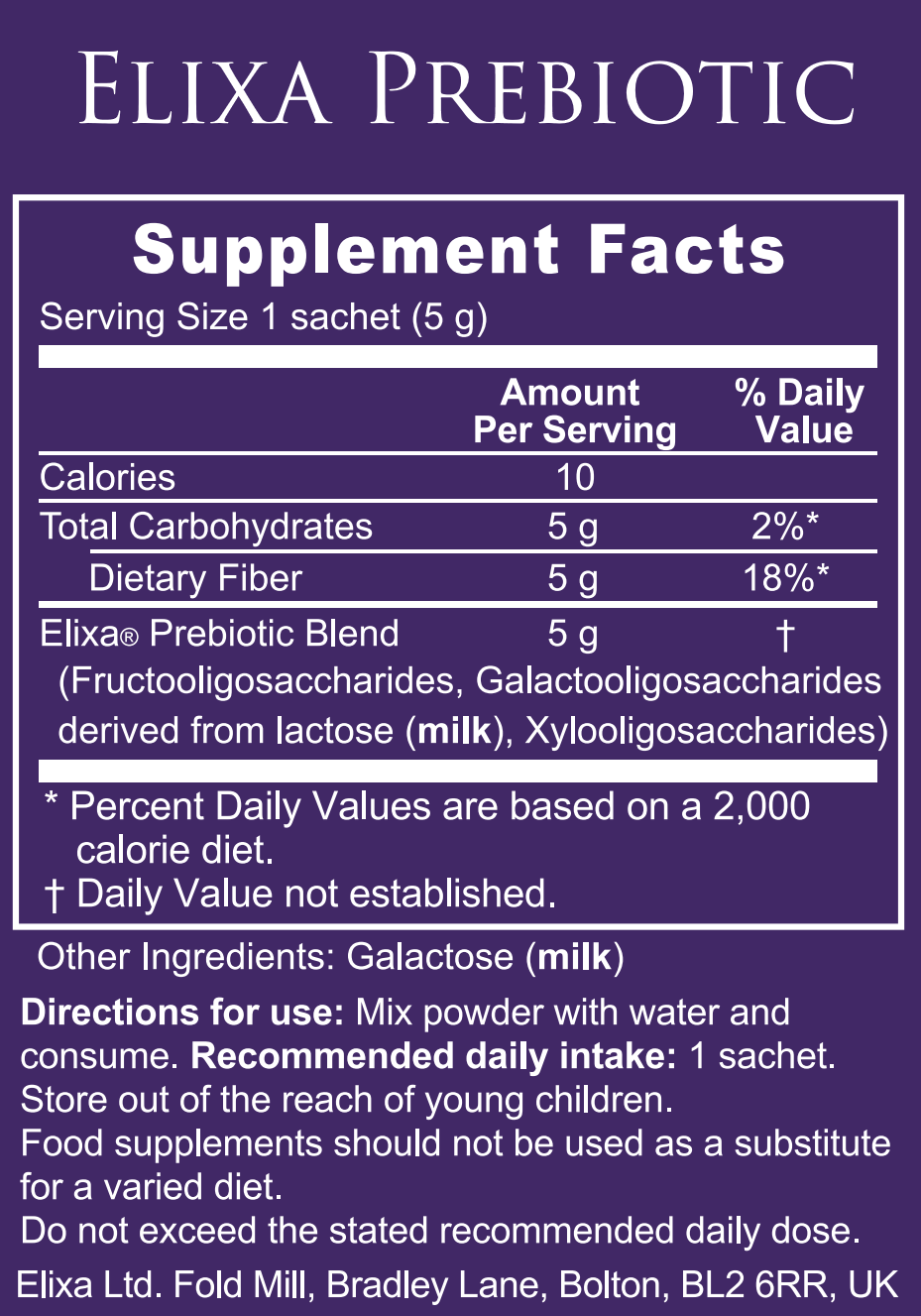 • 30 sachets of Elixa Prebiotic.